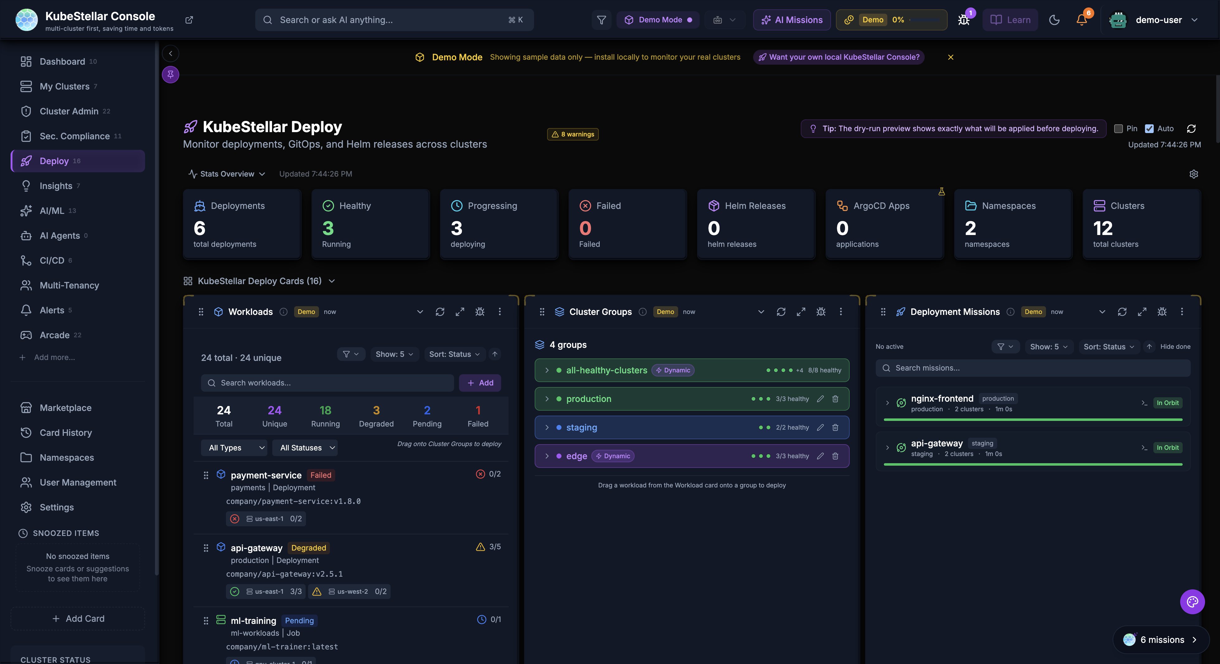 KubeStellar Console isn’t just for monitoring — it’s a full deployment and orchestration control plane for your workloads across multiple clusters.