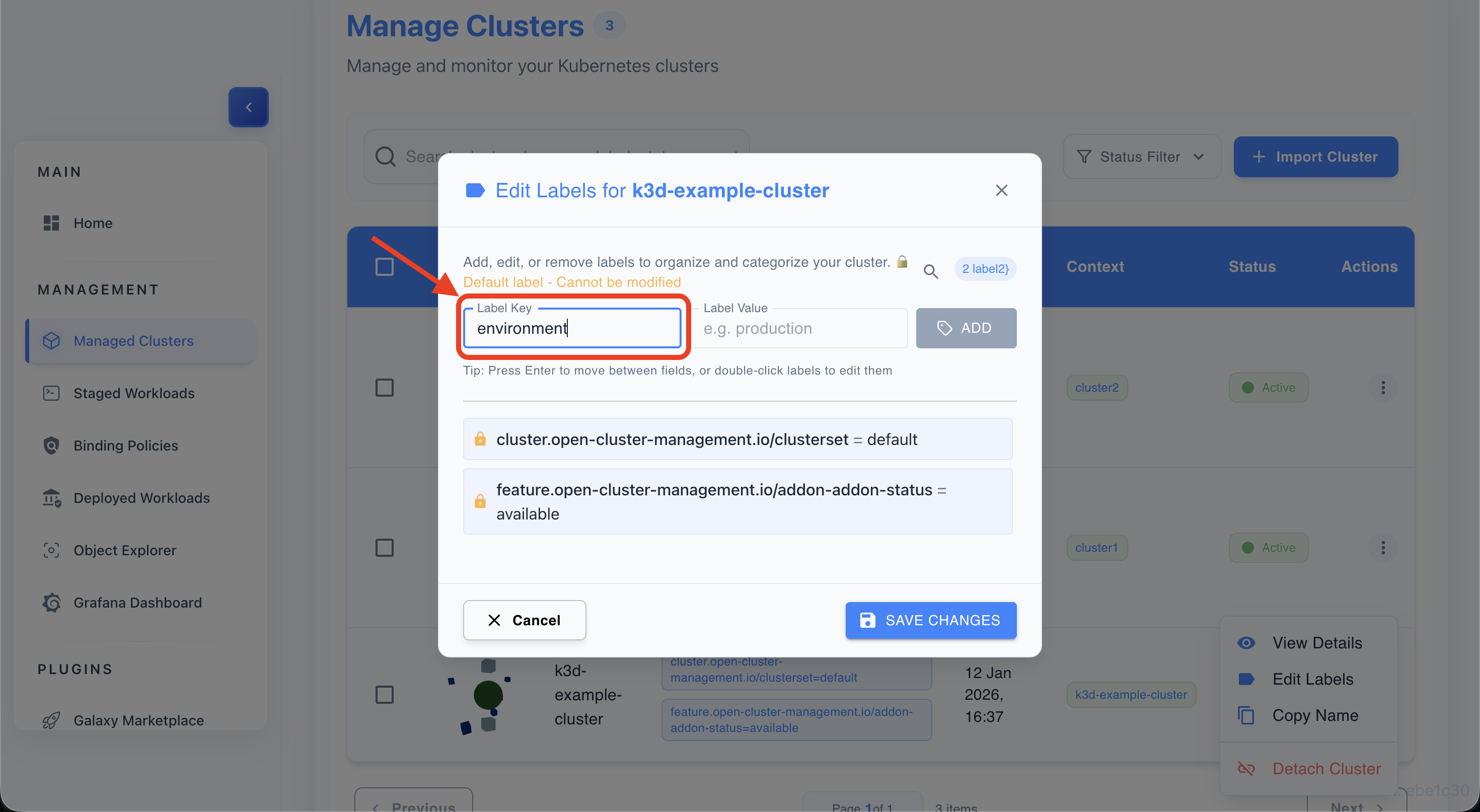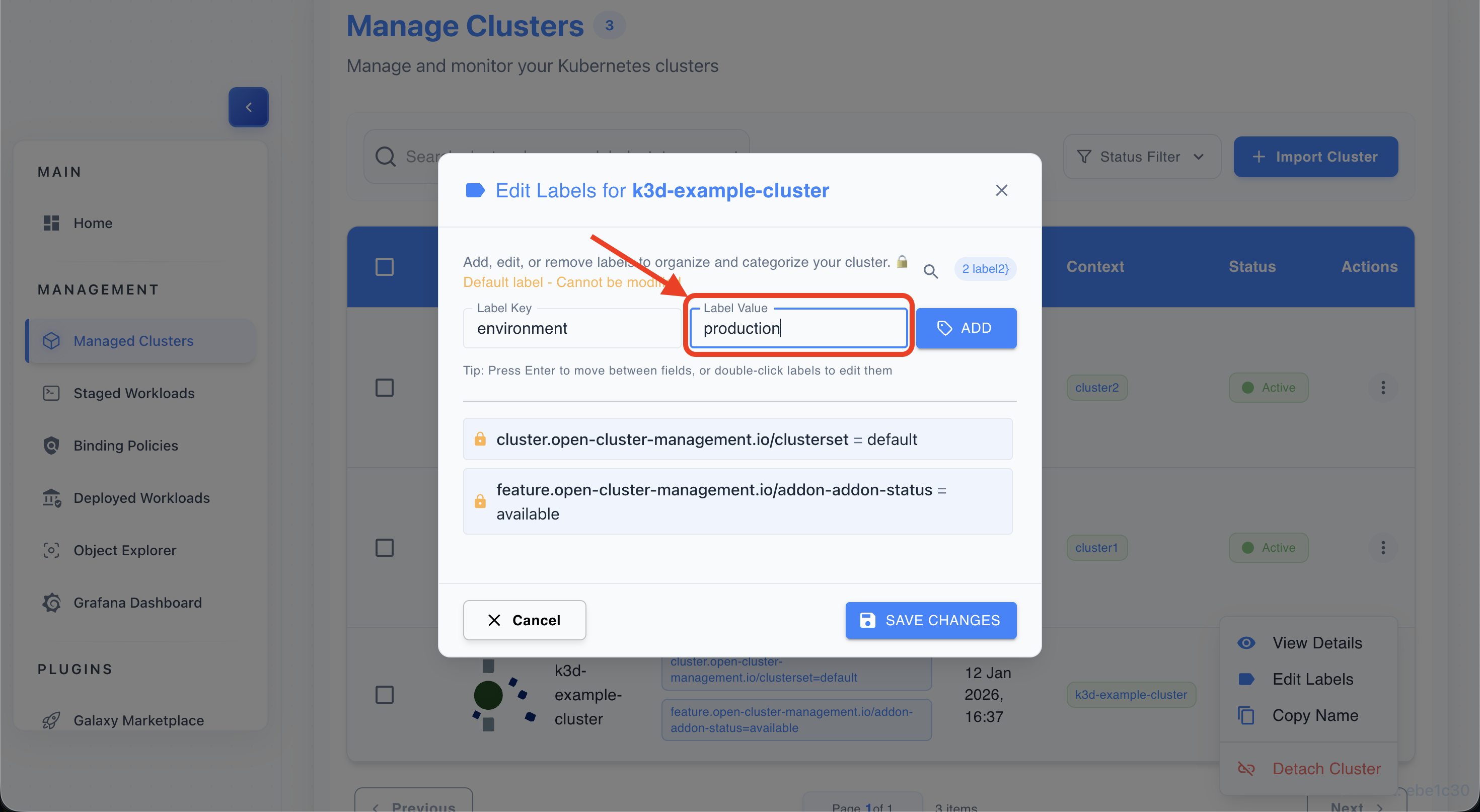 - Save changes to apply labels to the cluster.